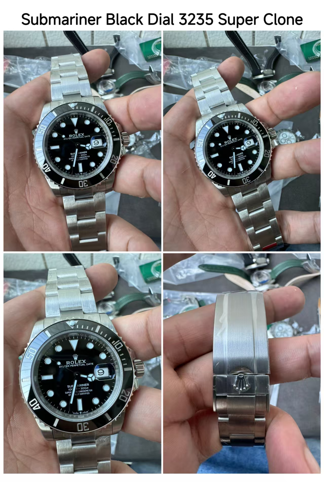 2. Rolex Submariner Series Black Dial Super Replica Watches Ref. 126610LV and 126610LN: The Rolex Submariner is the most replicated Rolex model in history. This particular model has spawned numerous replica versions of varying quality. However, demand remains equally strong for top-tier Rolex Submariner super replica watches equipped with genuine 3235 Swiss clone movements. This stems from the near-impossible distinction between authentic and replica models during comparison—both utilize 904L stainless steel, matching weight and feel perfectly. Below are actual photos of the super replica Rolex Submariner watches: