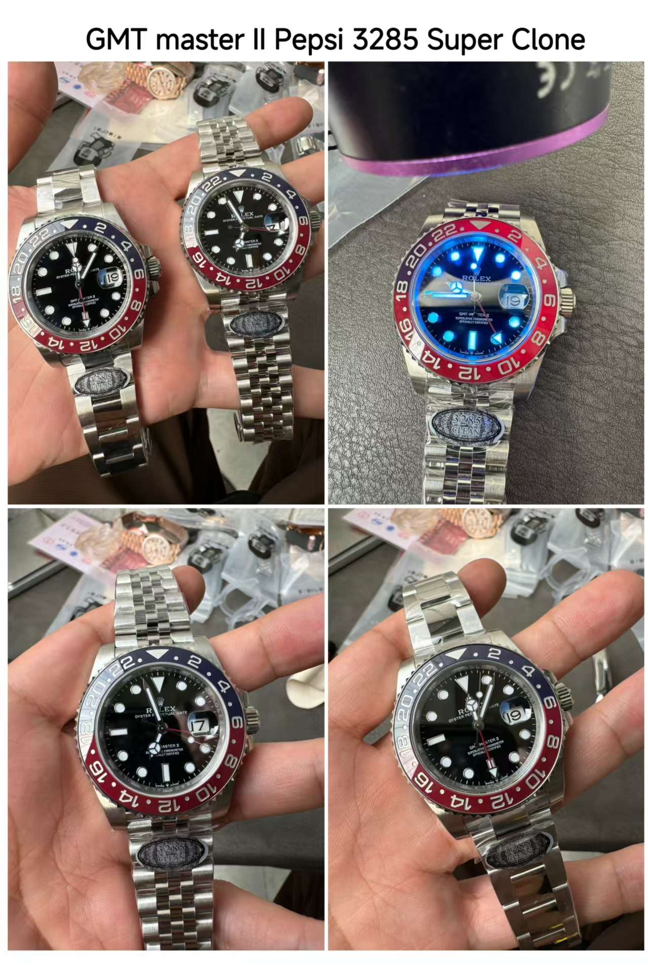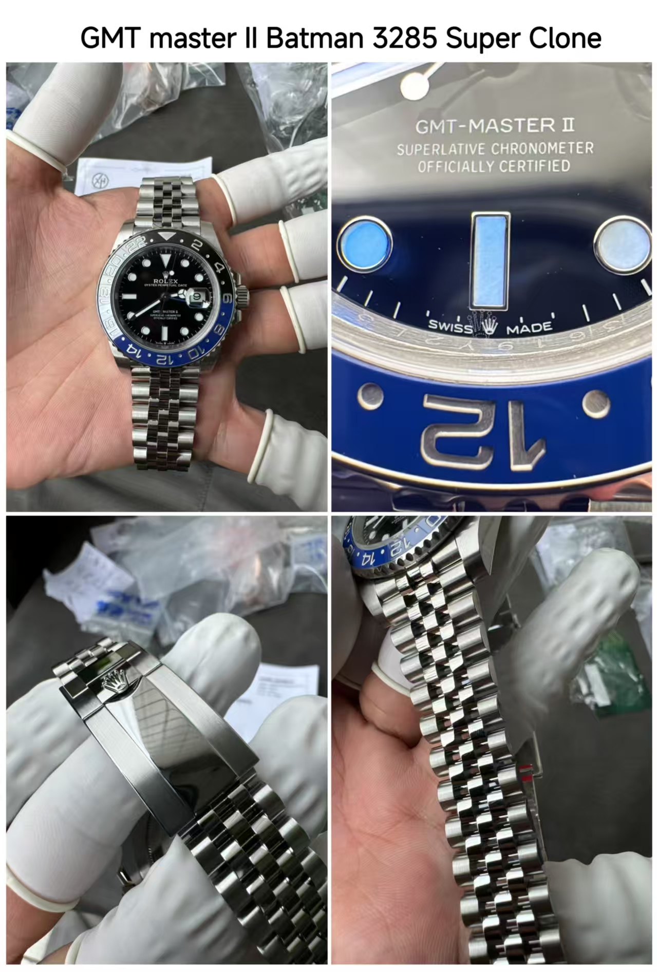 3. Rolex GMT Master II Pepsi Super Clone Ref 126710BLRO and the Rolex GMT Master II Batman Super Clone Ref 126710BLNR: These two 1:1 super clone watches are also very famous and always in demand. They have the 3285 Swiss clone movement and you can set two different time zones at the same time in this watch. Below are some photos of super clone Rolex GMT Pepsi and super clone Rolex GMT Batman replica watches: