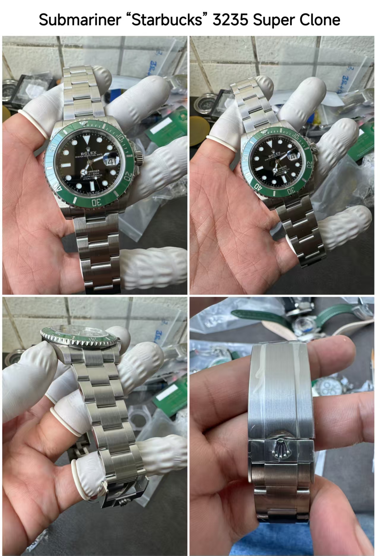 2. Rolex Submariner Series Black Dial Super Replica Watches Ref. 126610LV and 126610LN: The Rolex Submariner is the most replicated Rolex model in history. This particular model has spawned numerous replica versions of varying quality. However, demand remains equally strong for top-tier Rolex Submariner super replica watches equipped with genuine 3235 Swiss clone movements. This stems from the near-impossible distinction between authentic and replica models during comparison—both utilize 904L stainless steel, matching weight and feel perfectly. Below are actual photos of the super replica Rolex Submariner watches: