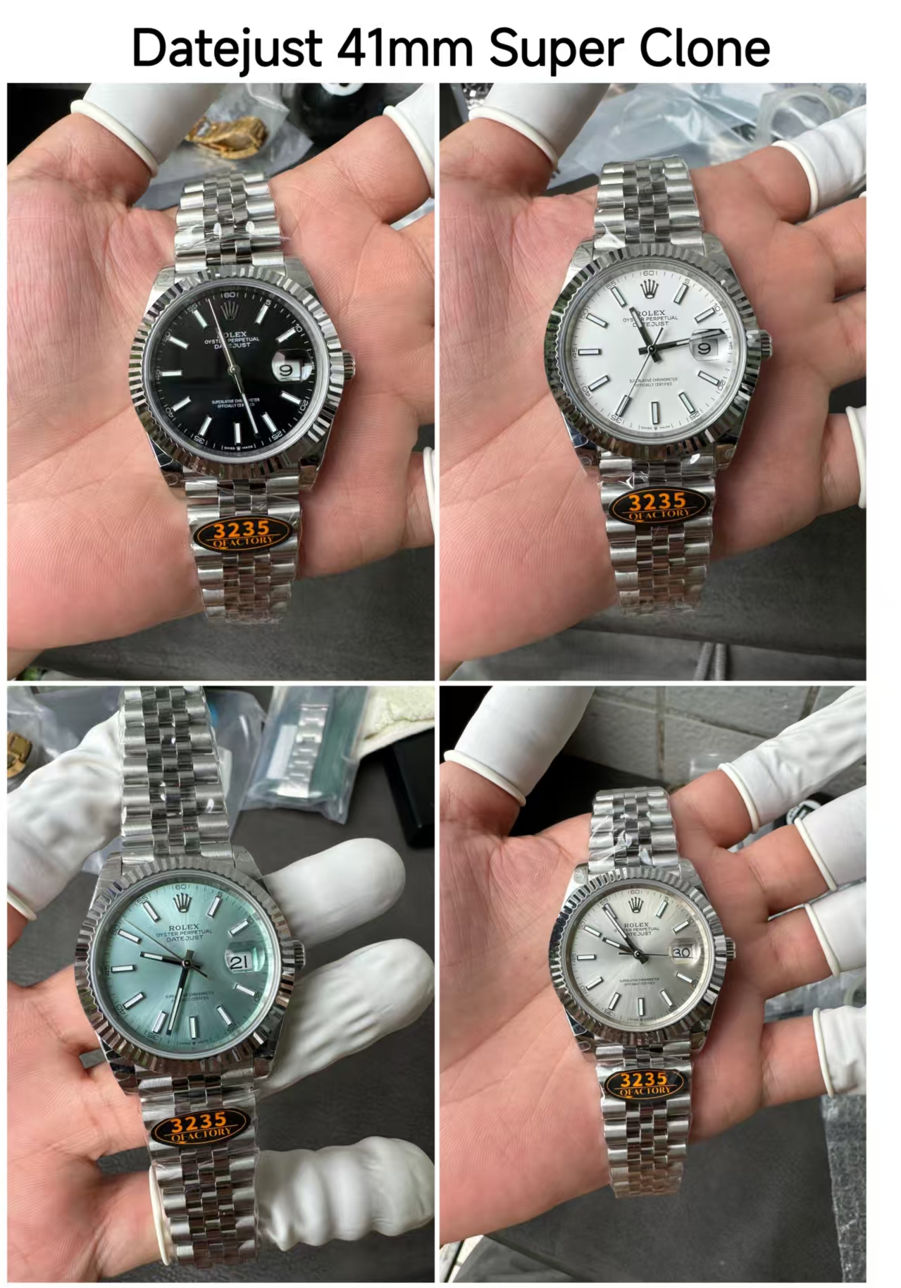 4. Rolex Datejust Super Clone Watches: Within the Rolex Datejust collection, the 41mm models stand out as some of the most popular choices. From the classic champagne dial with two-tone bracelet to the elegant blue dial version, these watches are highly sought after. Each model features the 3235 Swiss clone movement with a date display at the 3 o’clock position.