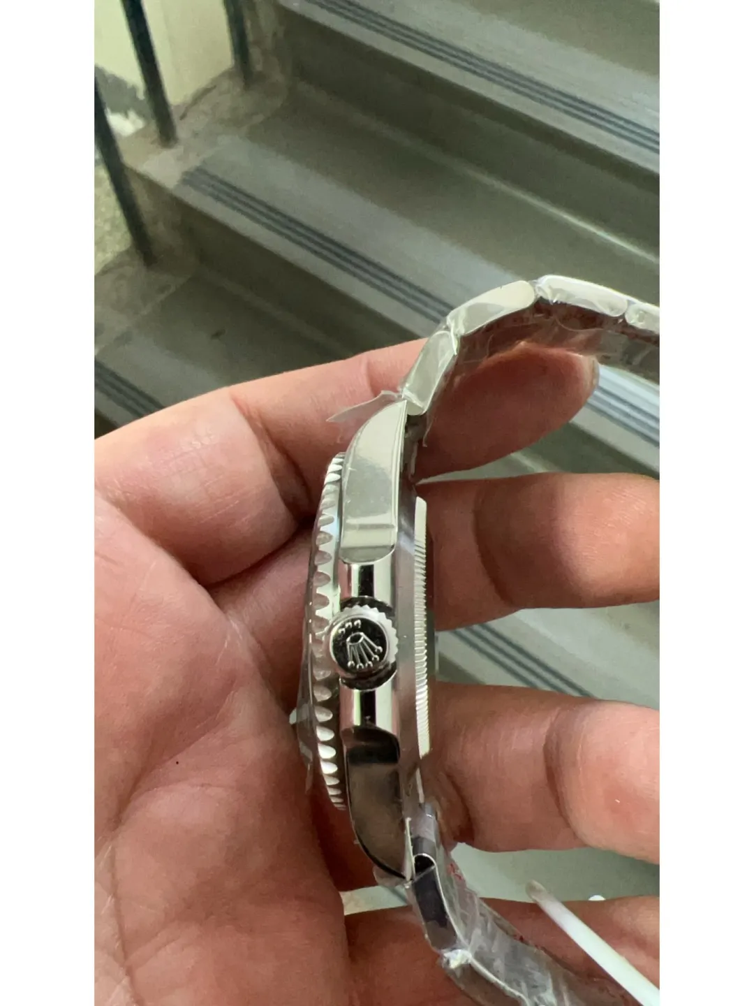 Case: Stainless steel case with screw down crown and ceramic bezel. Case diameter: 40mm. Height: 12.4mm. (904L Stainless Steel)